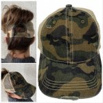 This all NEW Camouflage High Pony CC Ball cap is right on trend to wear with all of your favorite summer wear. You will love the fit and comfort of this adorable new high pony ball cap!